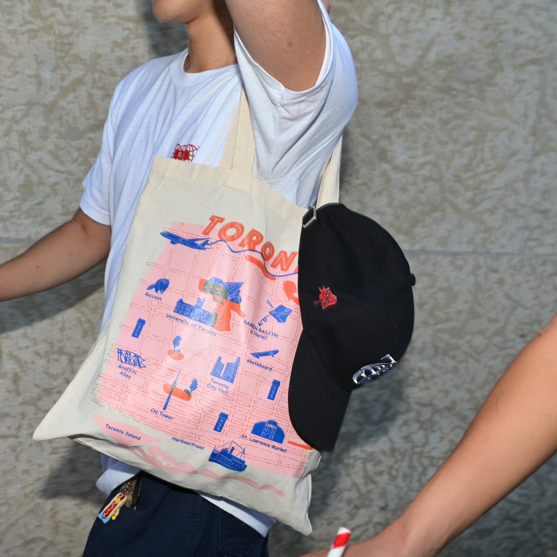 This tote bag was designed as a heartfelt thank-you to everyone who has supported us over the past 12 years in Toronto. Featuring a symbolic graphic and a hand-drawn map of Toronto, the design clearly marks the location of Ramen RAIJIN. With its practical size and functionality, this tote bag is perfect for everyday use while also capturing the charm of the city. It is our way of expressing gratitude for 12 incredible years.